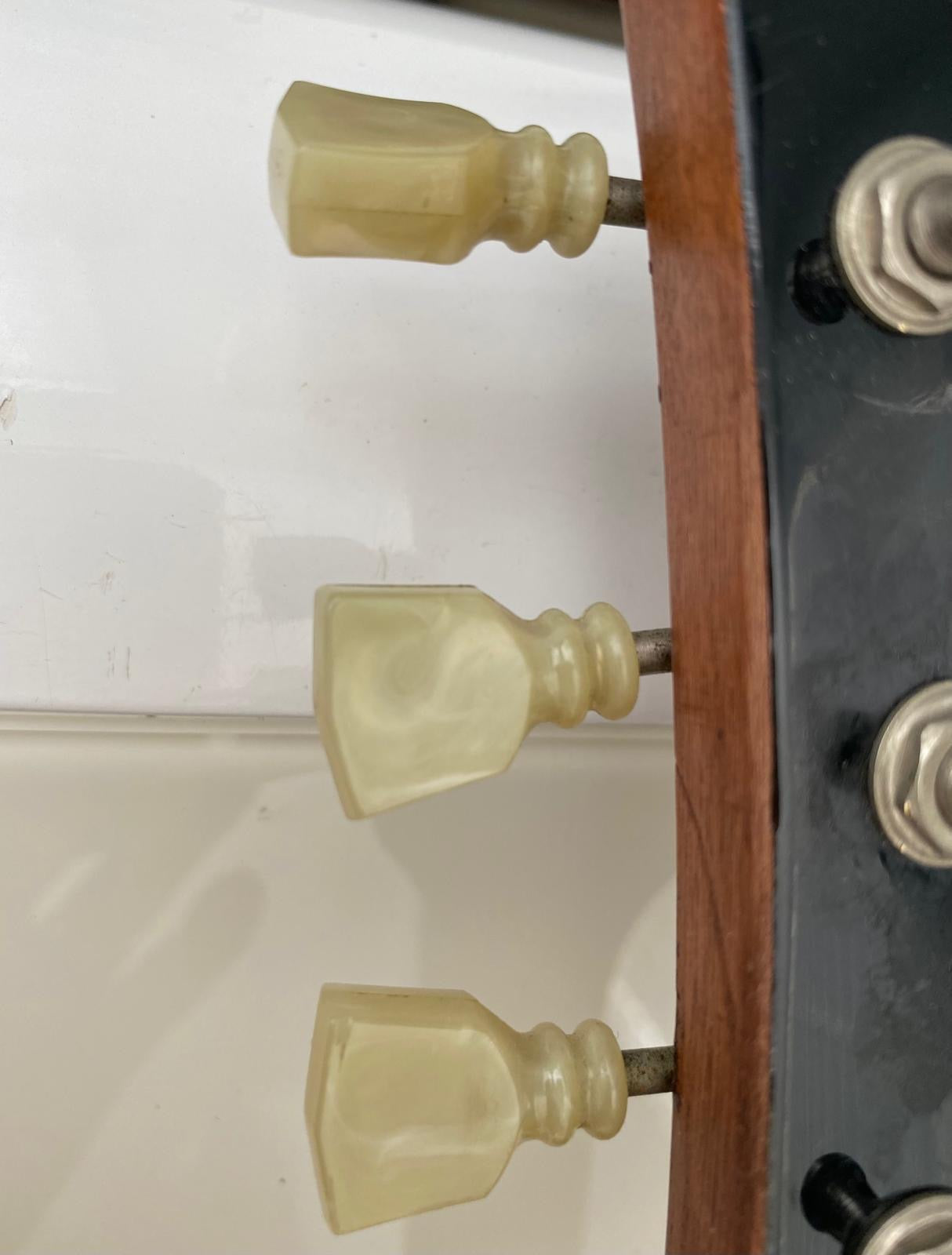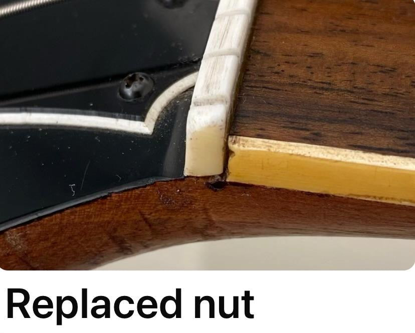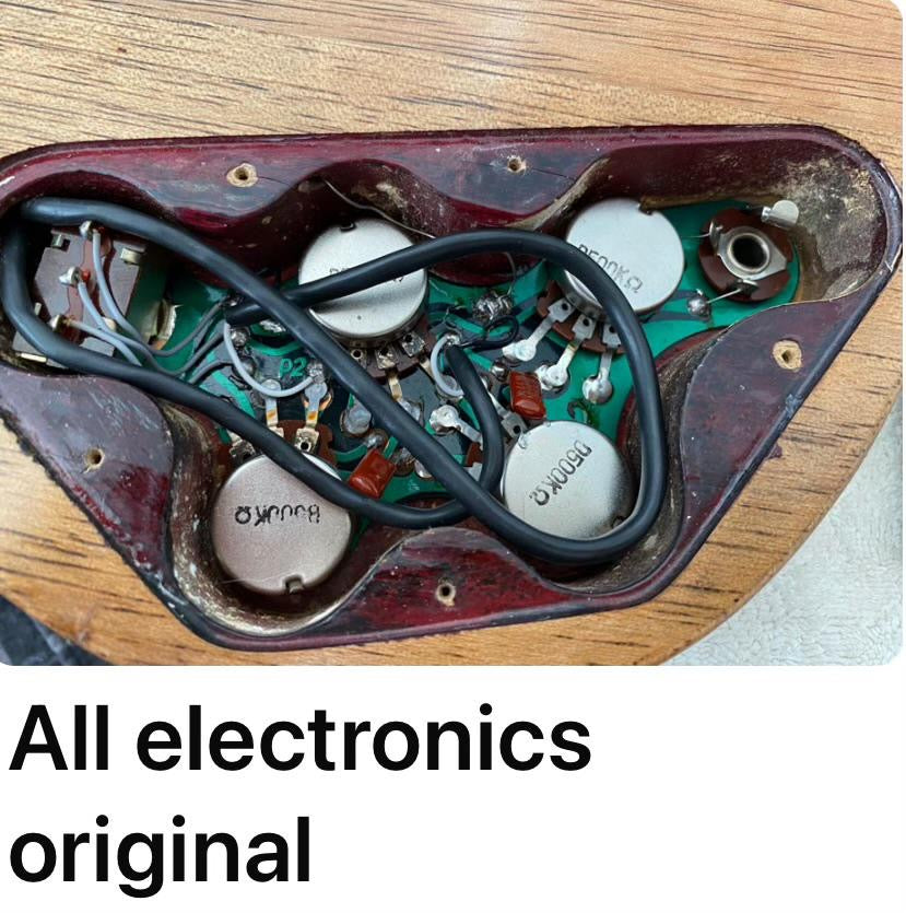 Basswood body and 3 piece neck with rosewood fretboard. Has pearled hexagonal fret markers and original frets are in good condition.  This guitar has had its cherry finish removed to expose a nicely grained natural body and neck.The Stopbar tailpiece has also been replaced with a generic unit.Price to sell & ready to Rock!